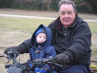 HAPPY THANKSGIVING!!! Today is not only Colton's 1st Thanksgiving but his 11 month birthday. I only have 1 more month to enjoy having a baby (and to loose the baby weight, crap better not eat for the next 30 days). I think I am beginning to get the birthday blues. But forget about that, this is a day for giving thanks. I am thankful for my boys, the big one and the little ones. I am thankful for my wonderful family that I miss very much. I am thankful for the wonderful family that I married into. I wish we could have seen everyone today. We went over to my mother-in-law Beth's house this morning. Connor, Mark, and Uncle Pete played football out back until the sticks became more interesting. Those darn sticks always take 1st place! But Uncle Pete needs to be ready next year when there will be 3 boys running around. Then we went over to Aunt Barbie's house for dinner with Nanna and Pappa Lou. It is always a treat to be with them. Connor played on the piano and he thought that was a blast. Pappa lou told me a story while Connor was tapping away at the keys. He said when Uncle Bob was little that he (pappa lou) told Nanna they should have named Bob Liberachi because he was the pee-ing-ist little boy! Get it....pianist/pee-ing-ist? I thought it was funny, hope any readers out there do too. That is why we all love Pappa Lou!! Anyway, since no one napped today, the boys were done by 6pm. In face Colton fell asleep in Pappa Lou's arms.